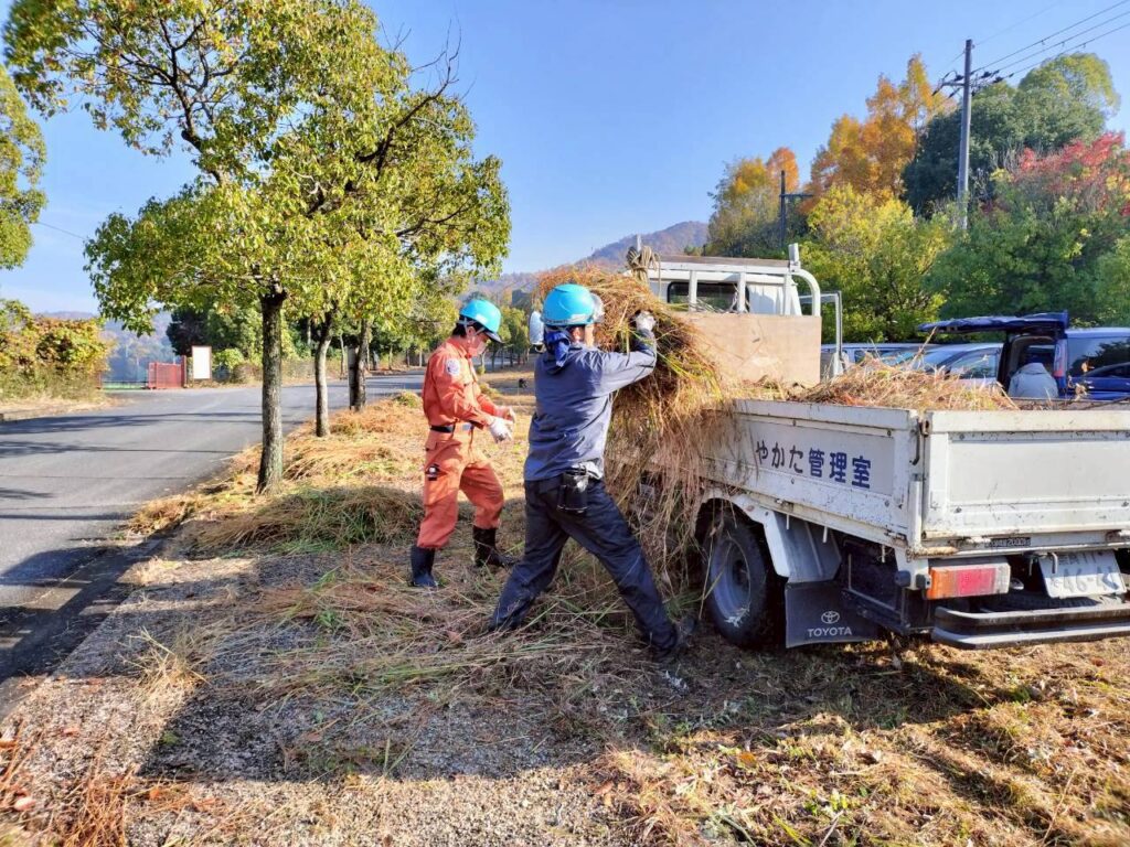 去る11月26・27日、おぢばにて、天理教災救隊の白川訓練が開催され、神奈川を含む16教区の災救隊が参加しました。神奈川教区隊は9名の参加をいただき、白川エリアの草刈りや側道整備に勤しみ、活気溢れた訓練ができました。